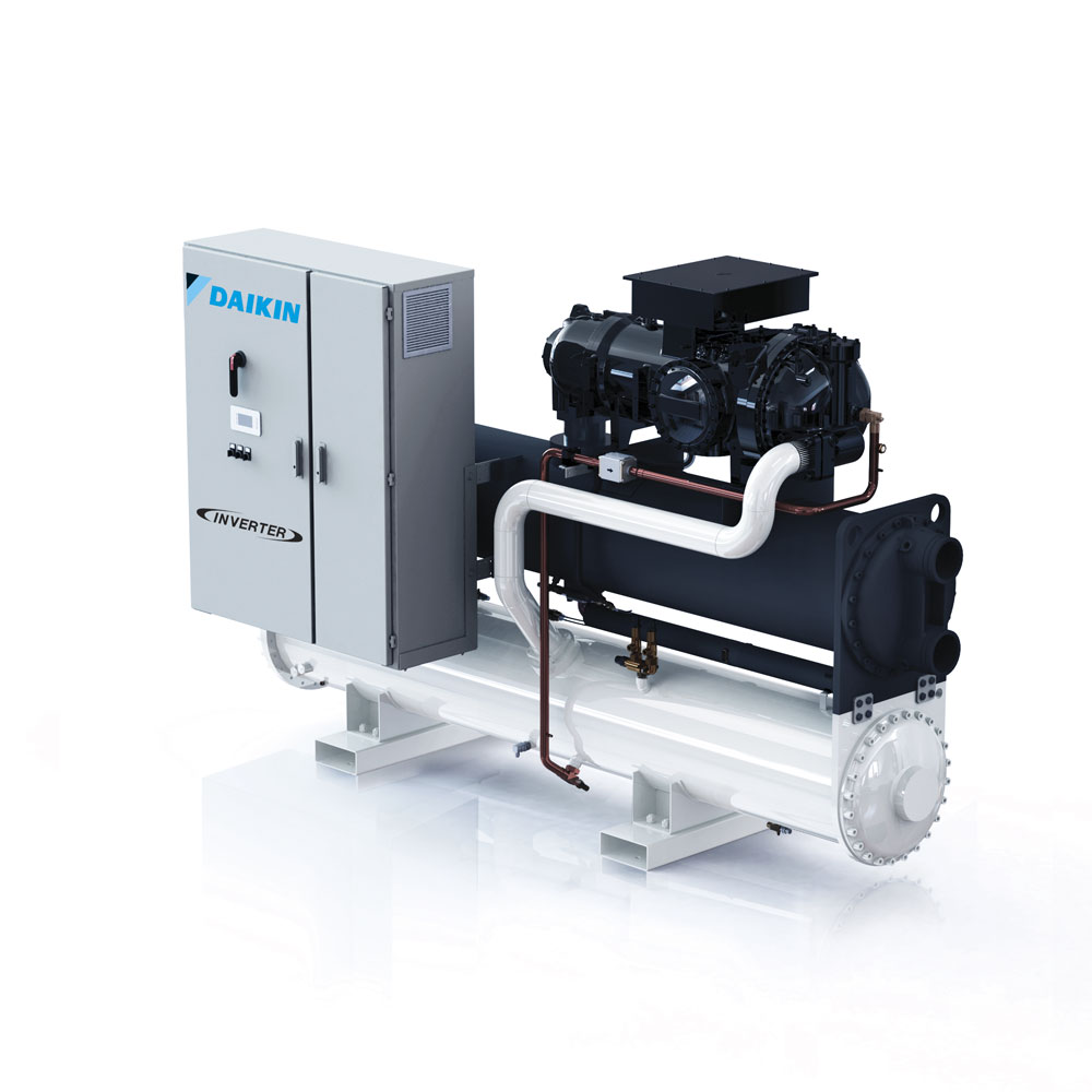 Інверторна холодильна машина з водяним охолодженням і гвинтовим компресором, висока ефективність, стандартний рівень шуму.