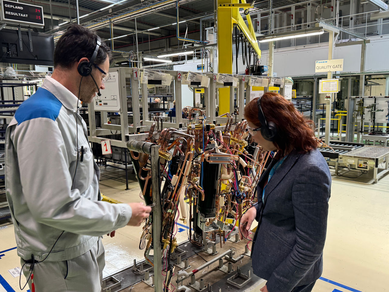 Підчас свого візиту Пані Matthieu взяла участь в комплексній екскурсії виробничим підприємством Daikin в Oostende, де Євродепутат на власні очі ознайомилася з передовими технологіями та процесами, які компанія впровадила для зменшення свого впливу на навколишнє середовище. Завод в Oostende, ключовий майданчик для європейських операцій Daikin, завжди знаходився в самому авангарді зусиль компанії щодо інтеграції сталого розвитку у свої виробничі процеси. Провідний глобальний кліматичний важковаговик виробляє теплові насоси для побутового і комерційного сегментів на своїх потужностях в Oostende.